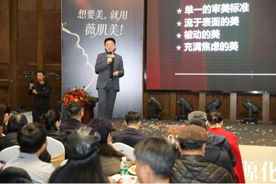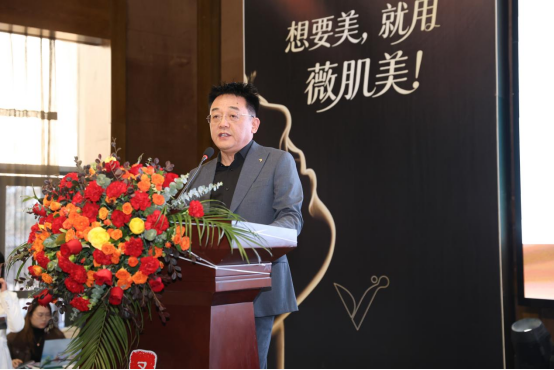 12月16日下午,发布会在董事长李泽峰的欢迎词中拉开帷幕。他以沉稳的视角回望品牌成长之路,强调薇肌美始终坚守让每个人活出绽放的自己的使命,以科学与创新为翼,深耕高端抗衰赛道。
