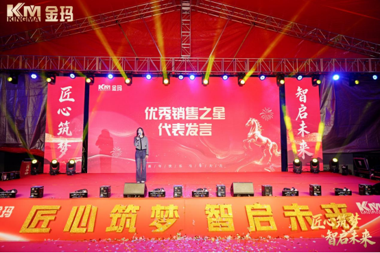 优秀销售之星与班组长代表先后发言,分享攻坚市场的执着、带领团队的担当,字字句句皆是金玛人“务实精进”的生动诠释。