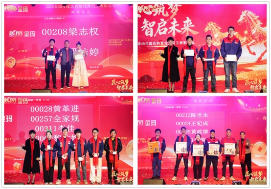 温情与惊喜双向奔赴,年会福利环节点燃全场热潮。抽奖环节重磅登场,各类精美礼品轮番送出,每一份礼品都承载着公司对员工的感恩与期许;红包雨同步降临,指尖传递的不仅是幸运与喜悦,更是金玛大家庭的温暖与福利。