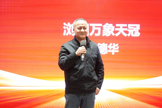 旺德府家居集团大客户业务中心总经理汤科先生登台致辞,深入阐释了本次新春订货会召开的重要意义,并围绕万象品牌、万象天冠品牌产品体系,对现场推出的各项优惠政策与支持方案进行了全面、细致的解读,帮助合作伙伴更好地把握政策红利、提升市场竞争力。