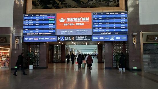 荣誉加身,步履不停。与此同时,东冠皇冠品牌广告强势登陆北京火车站核心枢纽,以首都为窗口,向全国传递国货自信。在这座承载千万客流的交通要塞,醒目的橙色品牌画面搭配“源自广东的·高定品牌”的鲜明标语,格外引人注目,将国货板材的品质与底气,传递给每一位过往旅客。北京站作为首都的重要门户,不仅是旅客出行的必经之地,更是品牌辐射全国的黄金阵地,此次广告投放,让东冠皇冠的品牌形象深入人心,让“民族品牌”的印记扎根大众心中,推动品牌声量再攀高峰。