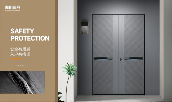 对于入户门而言,安全永远是底线。凤明深知这一点,在产品打造上始终将安全放在首位,用硬核配置筑牢家宅防线。超C级锁芯搭配不锈钢铰链与高承重合页,从核心部件到连接细节,全方位提升防盗性能,让居家更安心;搭载高端智能锁,将安防监测与智能操控融为一体,指纹、密码等多种解锁方式,兼顾安全与便捷,适配现代家庭的生活节奏。