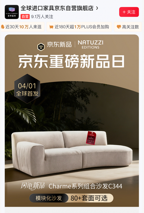 活动会场,京东联合品牌发布了多款定义2026年高端生活趋势的新品,涵盖京东独家款、战略合作款及非遗大师联名款。来自意大利的高端家居领导品牌Natuzzi Editions(意迪森),携2026年度重磅新品Charme沙发,京东全球独家首发。这款沙发主打模块化自由组合,曲线环抱设计,颜值与舒适并存。仅需13000元起,让更多消费者能以亲民价格拥有高端意式沙发。首发期间福利同步加码,4月下单的前100名用户,将额外获赠价值520元的Natuzzi Editions升级版显眼包,时尚实用且彰显品牌格调;101至200名用户则可收获价值258元的品牌托特包,日常出行、购物皆可使用。此外,活动期间分享活动给3位好友,还能领取500元可叠加使用的裂变优惠券,邀请好友一同享受意式舒适生活。此外,现场还发布了多款极具匠心的产品,包括续写“双燕比翼宿栖床”、全友家居“燕栖床”、莫语“织谣椅”、清闲“星舰椅Pro”、鸿蒙智选×慕思“睡魔方HD智能床、林氏家居“大黑熊PRO沙发床”等等。