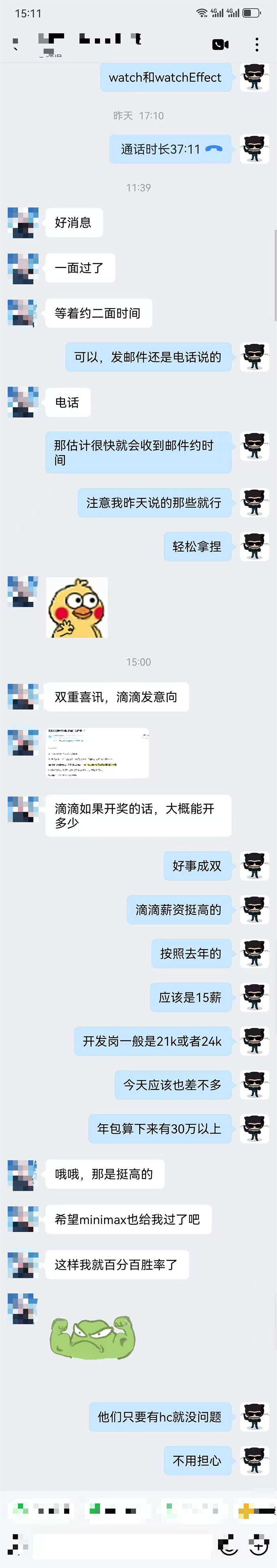 恭喜十指波学员大厂意向,滴滴出行,前端岗,年薪大概35个左右。