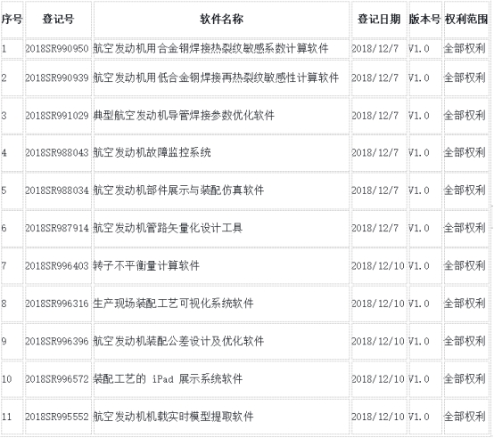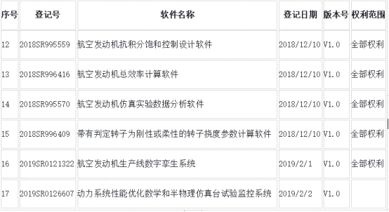 从官方渠道获悉,航天智造(厦门)科技研究院已经获得的如下17项目航空软件系统完整的知识产权授权(航天智造相关软件登记信息)