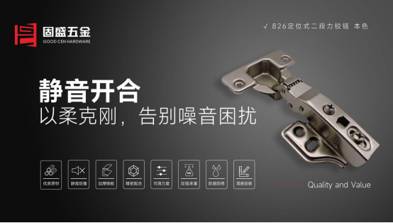 在五金行业同质化竞争白热化的当下,企业如何突破重围?固盛五金以用户需求为核心锚点,回归产品本质价值。通过深度洞察消费者对“静音、耐用、易安装”的核心诉求,创新推出定位式二段力铰链,于细节之处彰显匠心,为品质生活注入静谧质感。