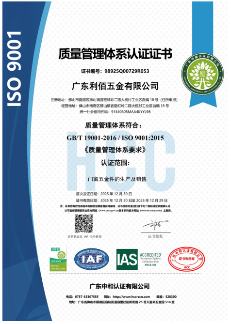 同时,我们积极融入行业发展浪潮,成功成为广东省门业协会第三届理事会“常务副会长单位”、广东省门窗协会“供应链专委会常务副会长单位”,以更重要的行业身份参与标准共建、赋能产业升级;在品质管控领域,公司顺利通过严苛审核,获得ISO9001质量管理体系认证证书,标志着产品品质与管理水平迈入规范化、精细化新阶段。这一系列荣誉的背后,是我们对产品品质的极致坚守,是对行业责任的主动担当,更是对市场需求的精准把握。